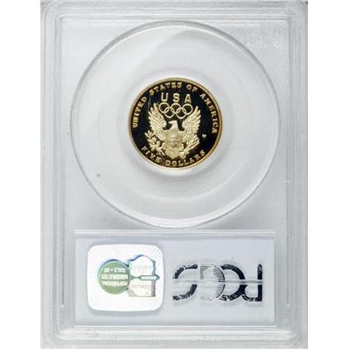 <B>1992-W G$5 Olympic Gold Five Dollar PR70 Deep Cameo PCGS.</B></I> PCGS Population (60/0). NGC Census: (722/0). Mintage: 77,313. Numismedia Wsl. Price for NGC/PCGS coin in PR70: $275. (#9926)<BR><BR><b>Shipping:</b> Coins & Currency (<a target="_blank" href="http://www.heritageauctions.com/common/shipping.php">view shipping information</a>)