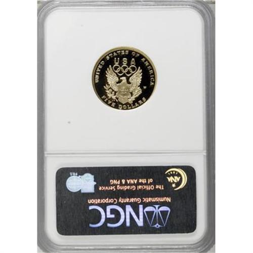 <B>1992-W G$5 Olympic Gold Five Dollar PR70 Deep Cameo NGC.</B></I> NGC Census: (732/0). PCGS Population (60/0). Mintage: 77,313. Numismedia Wsl. Price for NGC/PCGS coin in PR70: $275. (#9926)<BR><BR><b>Shipping:</b> Coins & Currency (<a target="_blank" href="http://www.heritageauctions.com/common/shipping.php">view shipping information</a>)