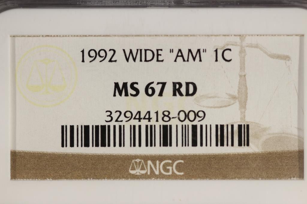 1992 WIDE "AM" LINCOLN CENT NGC MS67RD