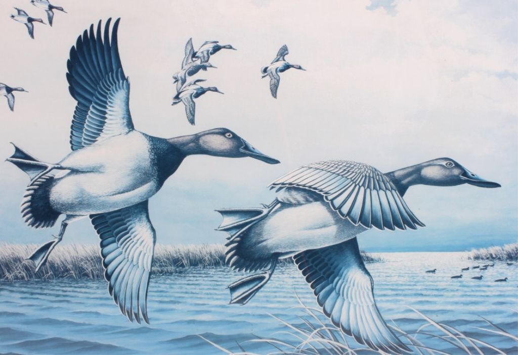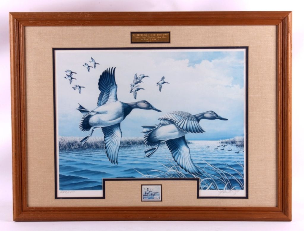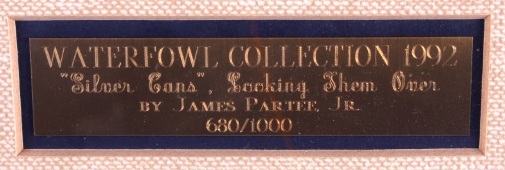 This is a 1992 Waterfowl Collector's Series framed print. The print was designed by James Partee Jr. This is a limited edition print numbered 680/1000. The print has been signed by the artist. It is in very good condition. The frame measures 22.5" x 30.5".