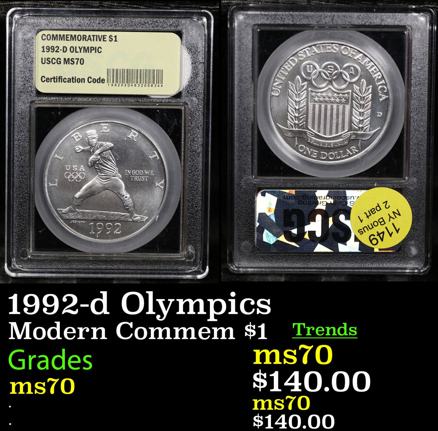 1992-d Olympics Modern Commem Dollar $1 Graded ms70, Perfection By USCG.