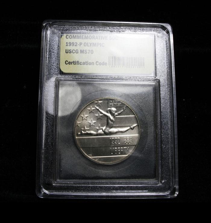 The 1992 Olympic Half Dollar was issued along with separate gold and silver coins for the 1992 Olympic Games. The summer games were held in Barcelona, Spain and the winter games were held in Albertville and Savoie, France. The commemorative coin issues were used to raise money to train American athletes. This example has been graded ms70 by USCG. PCGS lists an ms70 at $360. Estimated Value $100