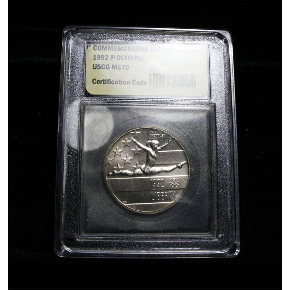 The 1992 Olympic Half Dollar was issued along with separate gold and silver coins for the 1992 Olympic Games. The summer games were held in Barcelona, Spain and the winter games were held in Albertville and Savoie, France. The commemorative coin issues were used to raise money to train American athletes. This example has been graded ms70 by USCG. PCGS lists an ms70 at $360. Estimated Value $125