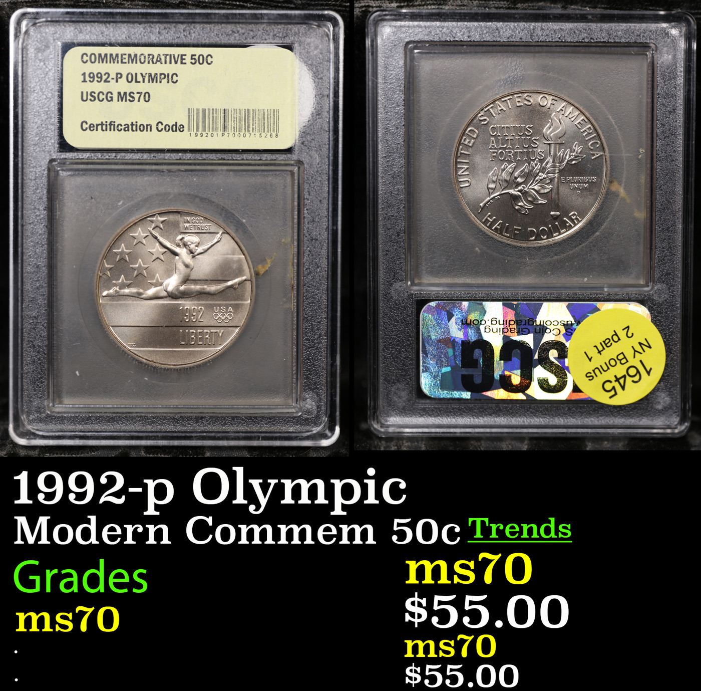 1992-p Olympic Modern Commem Half Dollar 50c Graded ms70, Perfection By USCG.