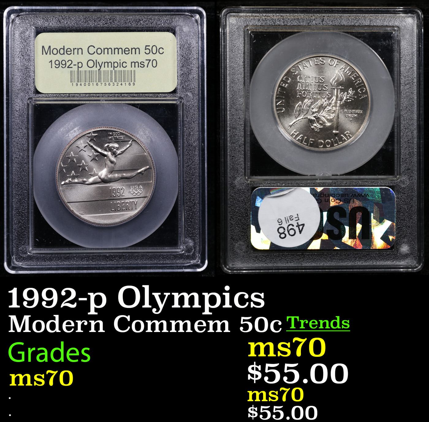 1992-p Olympics Modern Commem Half Dollar 50c Graded ms70 By USCG.