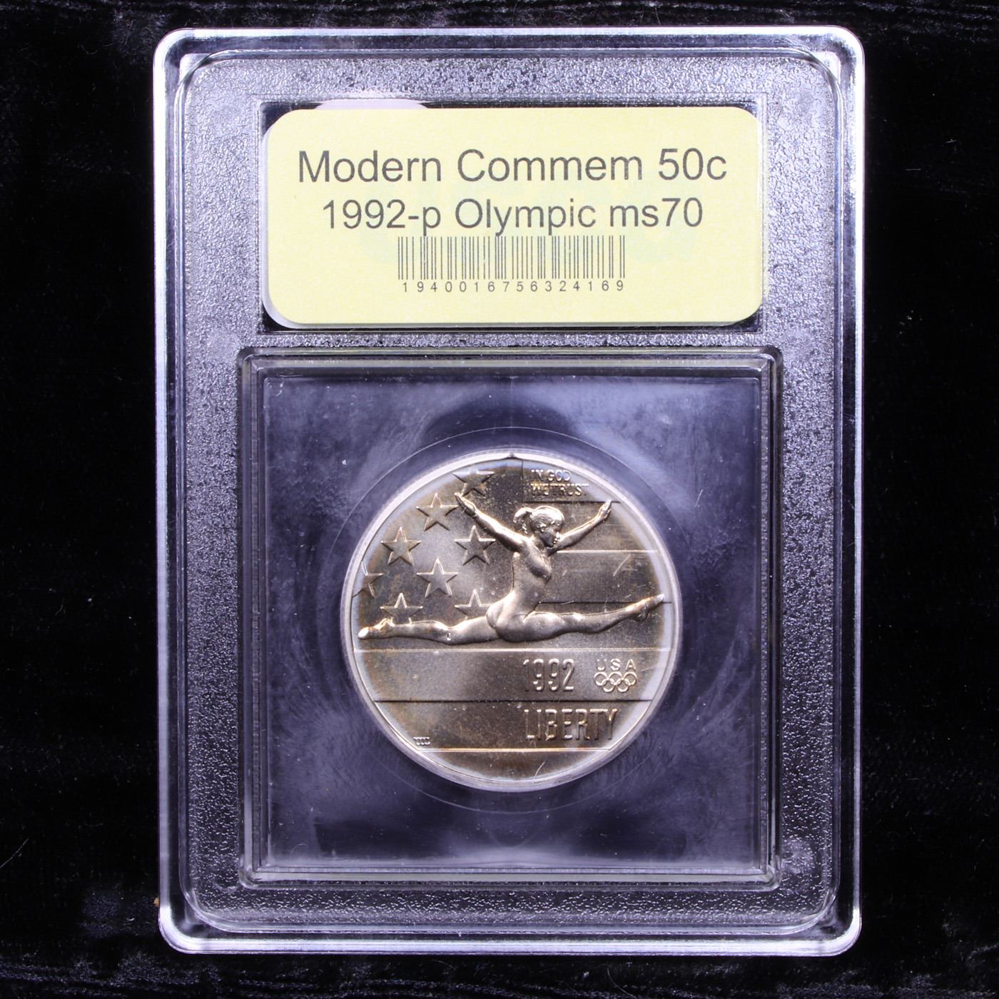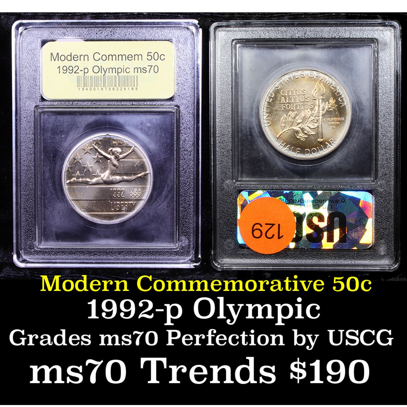 1992-p Olympics Modern Commem Half Dollar 50c Graded ms70, Perfection By USCG. The 1992 Olympic Half Dollar was issued along with separate gold and silver coins for the 1992 Olympic Games. The summer games were held in Barcelona, Spain and the winter games were held in Albertville and Savoie, France. The commemorative coin issues were used to raise money to train American athletes. This example has been graded ms70 by USCG.