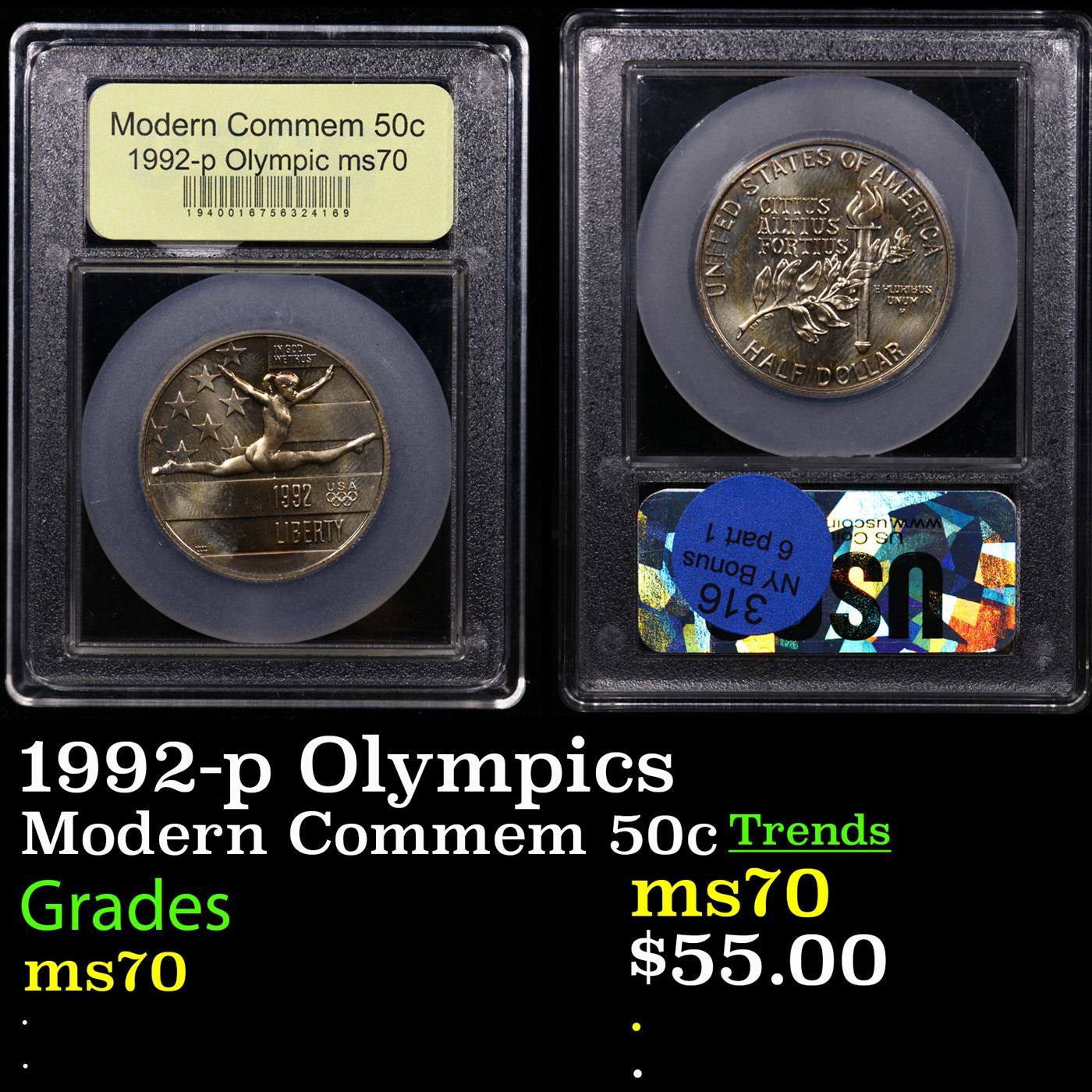 1992-p Olympics Modern Commem Half Dollar 50c Graded ms70, Perfection By USCG.