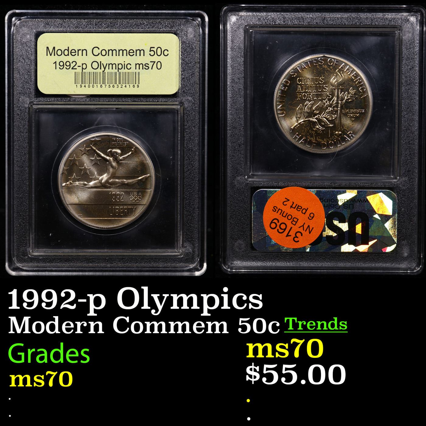 1992-p Olympics Modern Commem Half Dollar 50c Graded ms70, Perfection By USCG