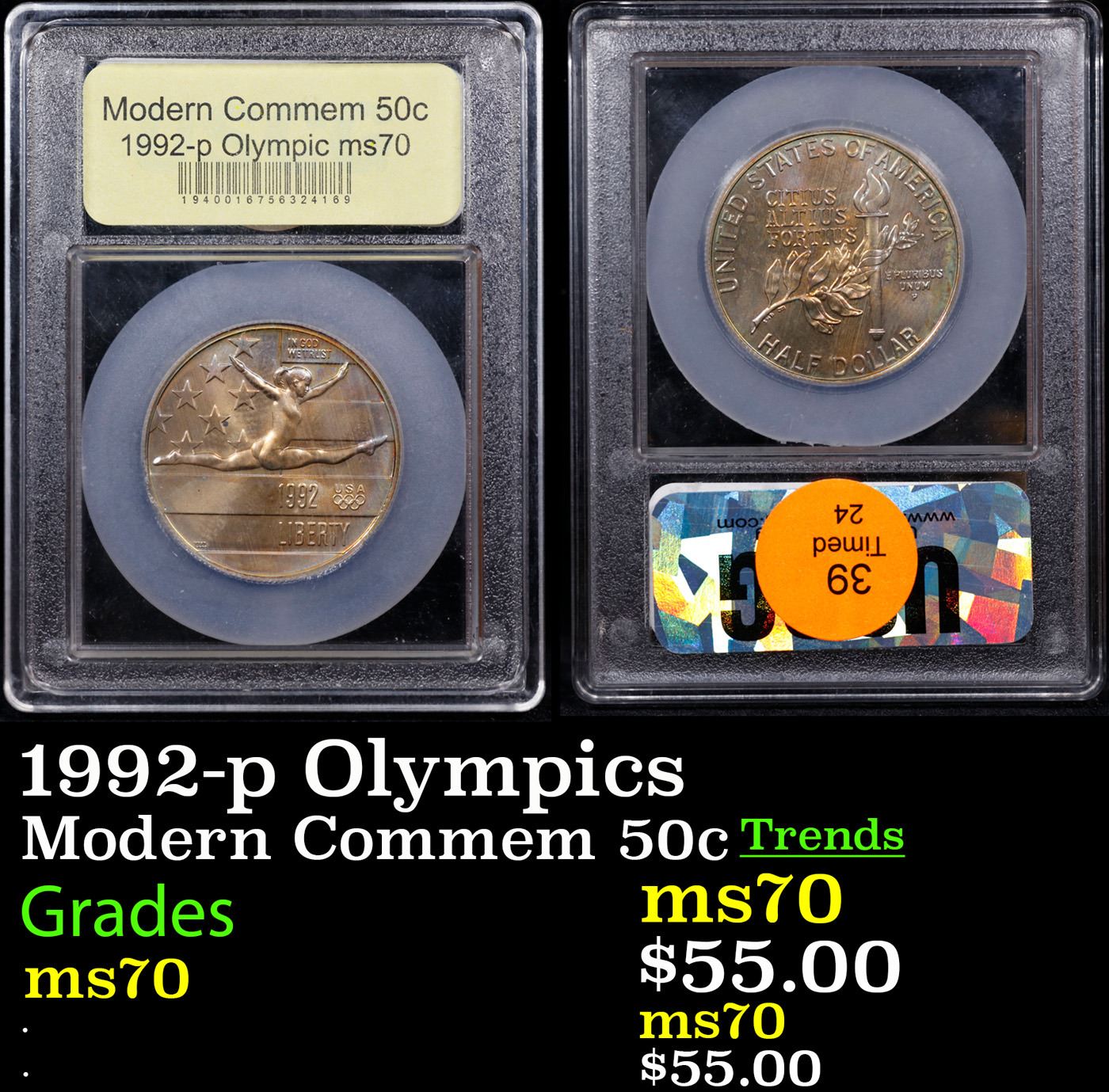 1992-p Olympics Modern Commem Half Dollar 50c Graded ms70, Perfection By USCG