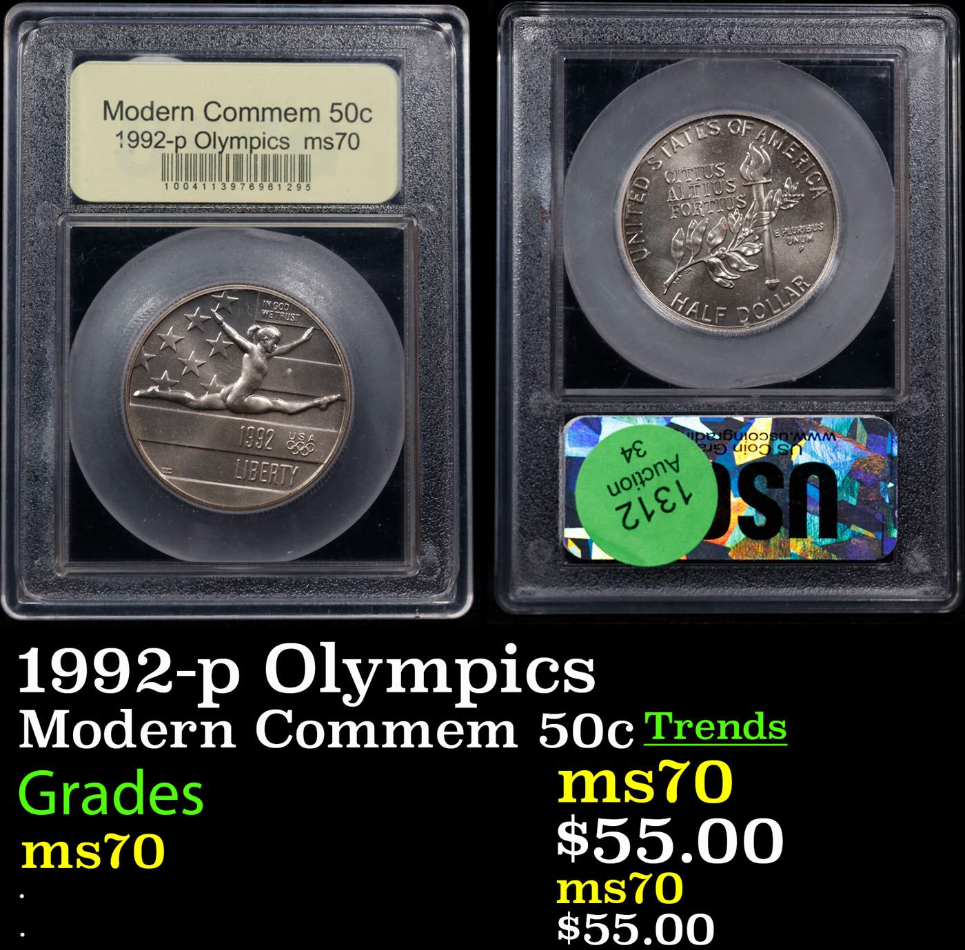 1992-p Olympics Modern Commem Half Dollar 50c Graded ms70, Perfection By USCG.