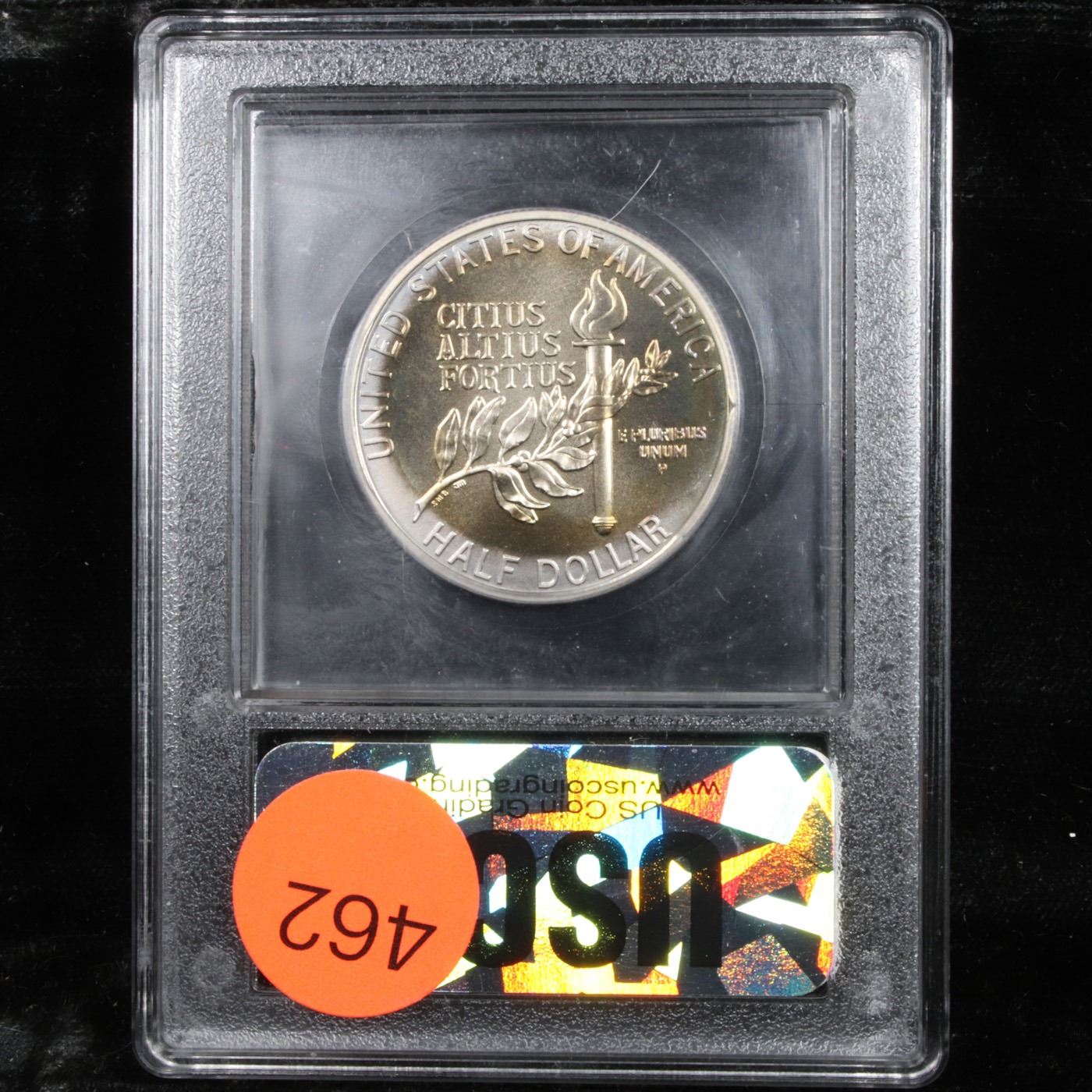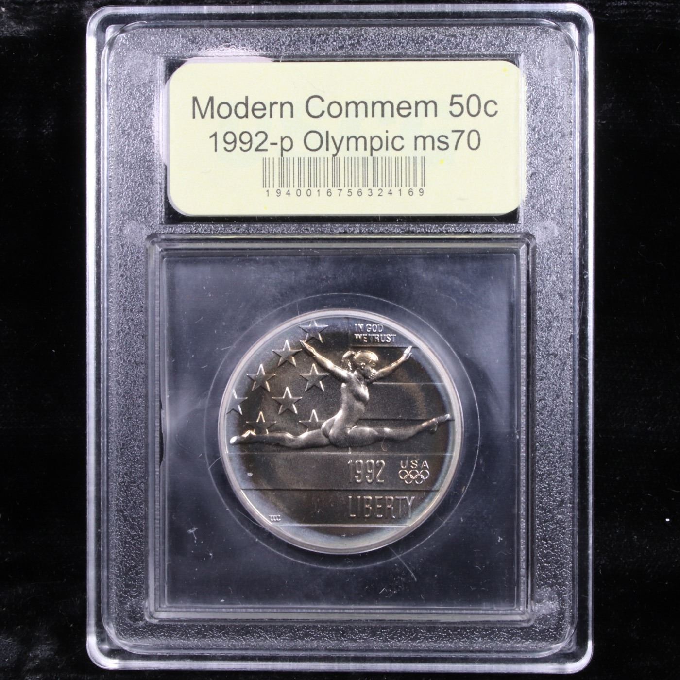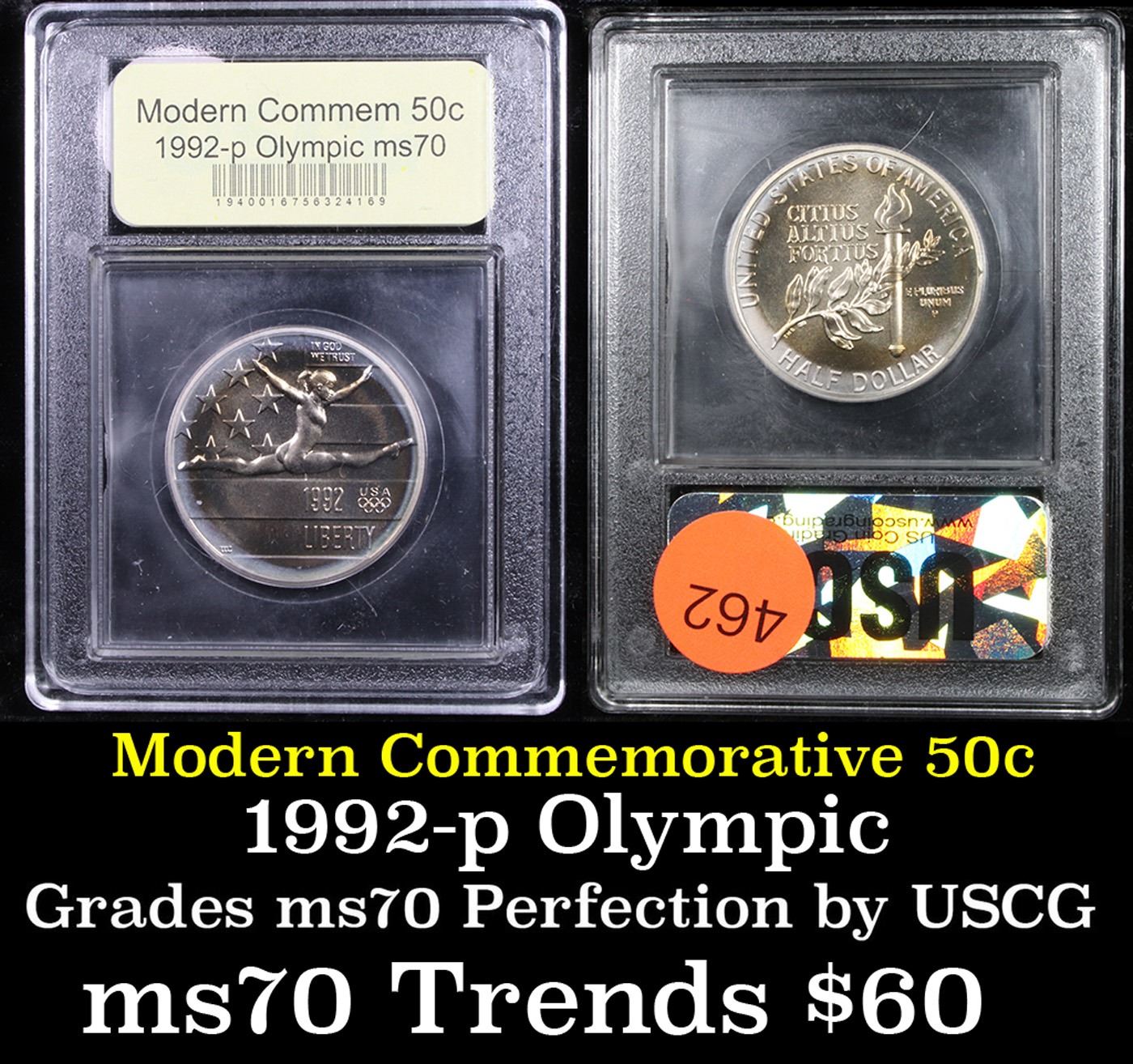 1992-p Olympics Modern Commem Half Dollar 50c Grades ms70, Perfection By USCG. The 1992 Olympic Half Dollar was issued along with separate gold and silver coins for the 1992 Olympic Games. The summer games were held in Barcelona, Spain and the winter games were held in Albertville and Savoie, France. The commemorative coin issues were used to raise money to train American athletes. This example has been graded ms70 by USCG.
