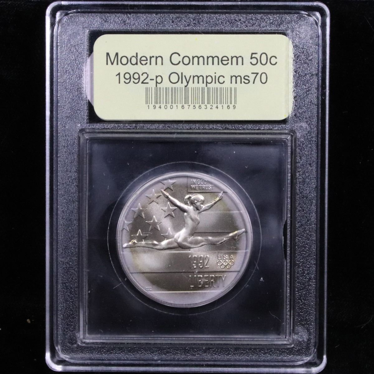1992-p Olympics Rainbow Toned . . Modern Commem Half Dollar 50c Graded ms70, Perfection By USCG.