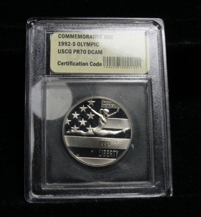 The 1992 Olympic Proof Half Dollar was issued for the XXV Olympic Games. PCGS lists PR70 DCAM at $550. This coin is graded PR70 DCAM by USCG. Estimated Value $150