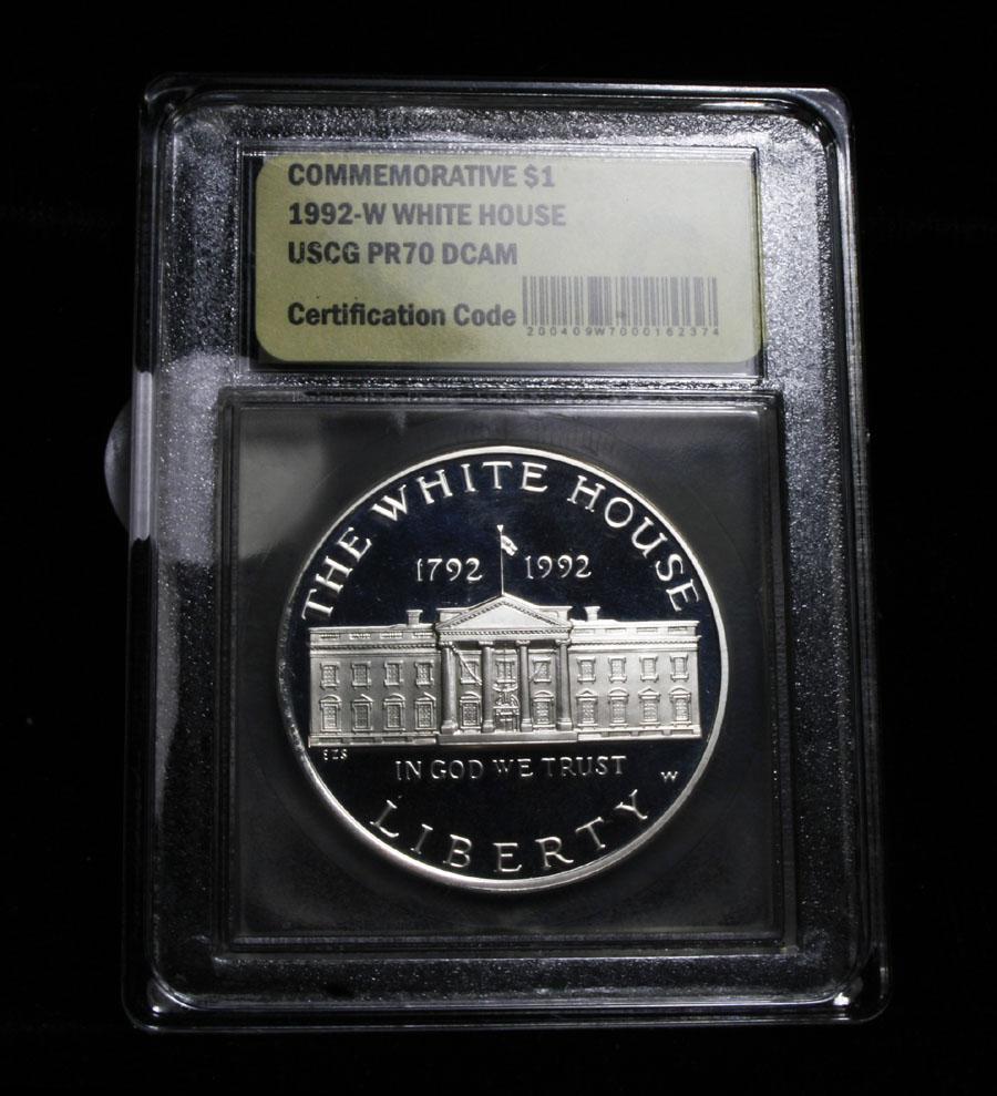 The 1992 White House Silver Dollar was released to mark the 200th anniversary of the White House. The cornerstone for the structure was originally placed on October 13, 1792. This proof dollar is graded PF70 DCAM by USCG. PCGS lists a PR70 Dam at $800 Estimated Value $250.