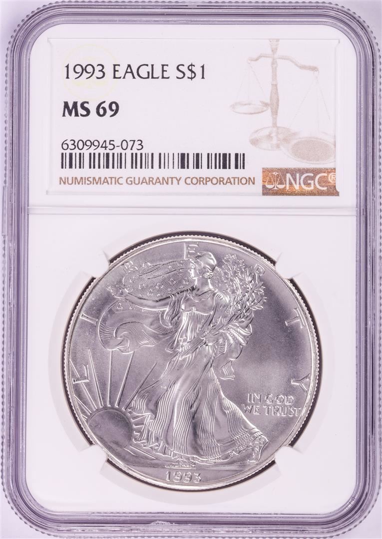One 1993 $1 American Silver Eagle Coin NGC MS69. NGC Certified.