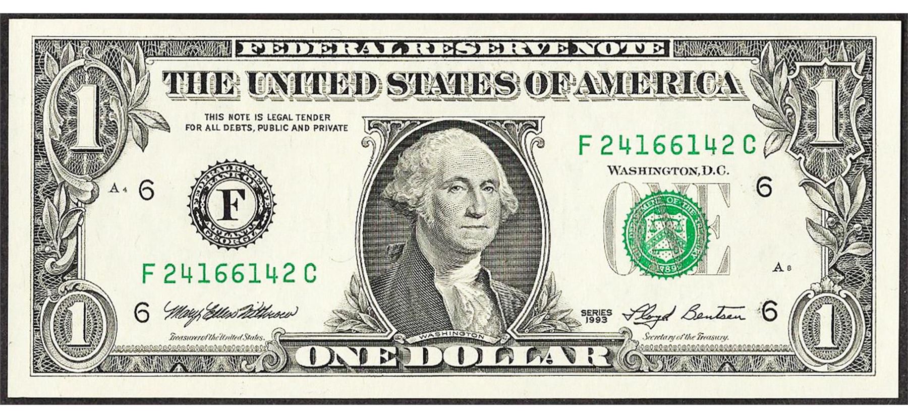 One 1993 $1 Federal Reserve Note Radar Serial Number.