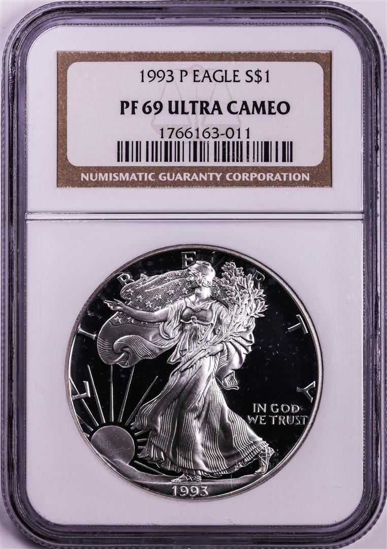 One 1993 $1 Proof American Silver Eagle Coin NGC PF69 Ultra Cameo. NGC Certified.