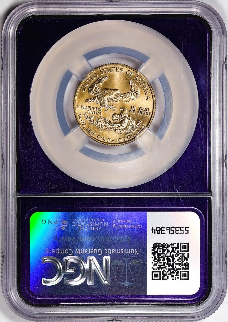 One 1993 $10 American Gold Eagle Coin NGC MS70 Purple Core. NGC Certified.