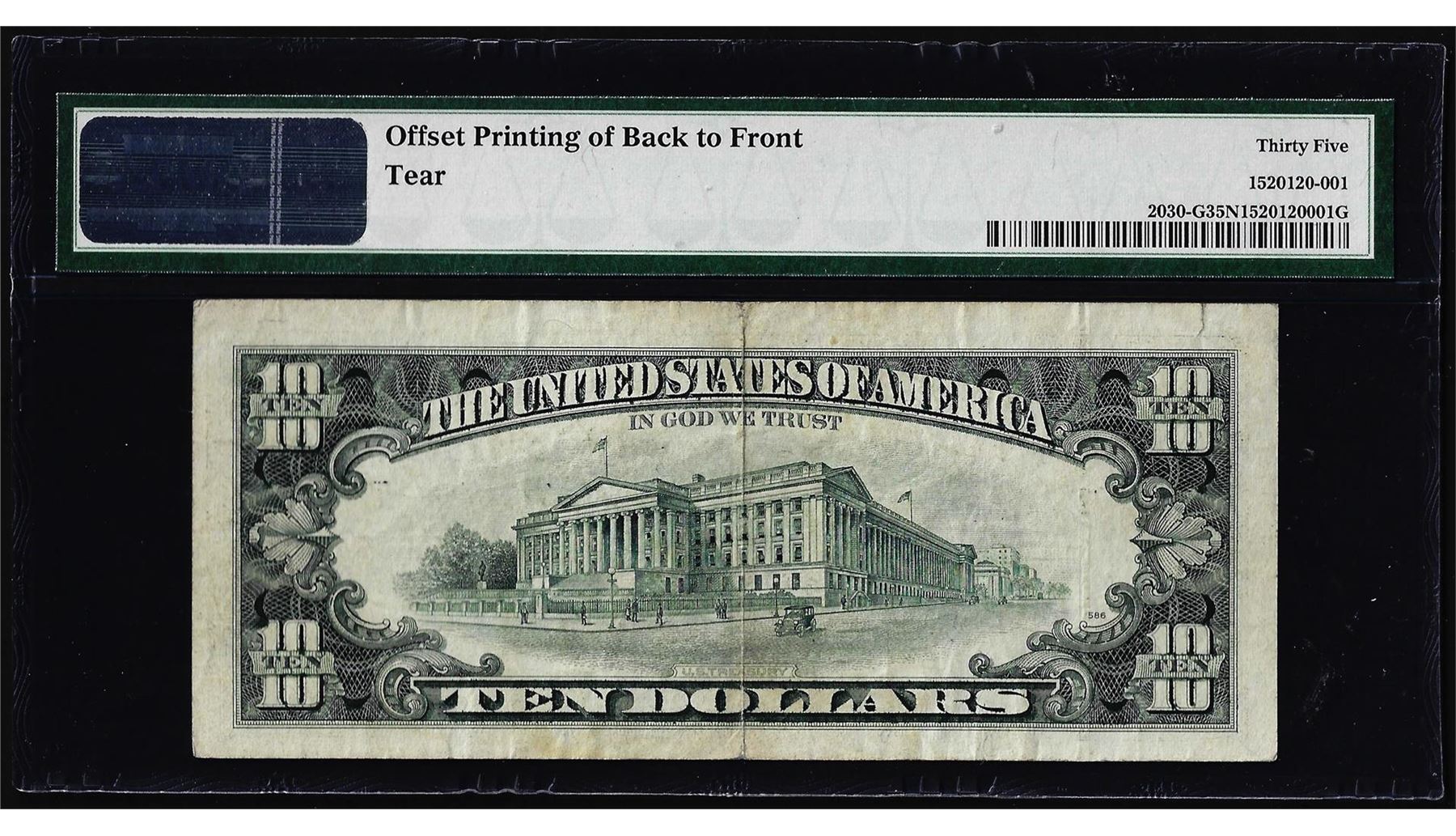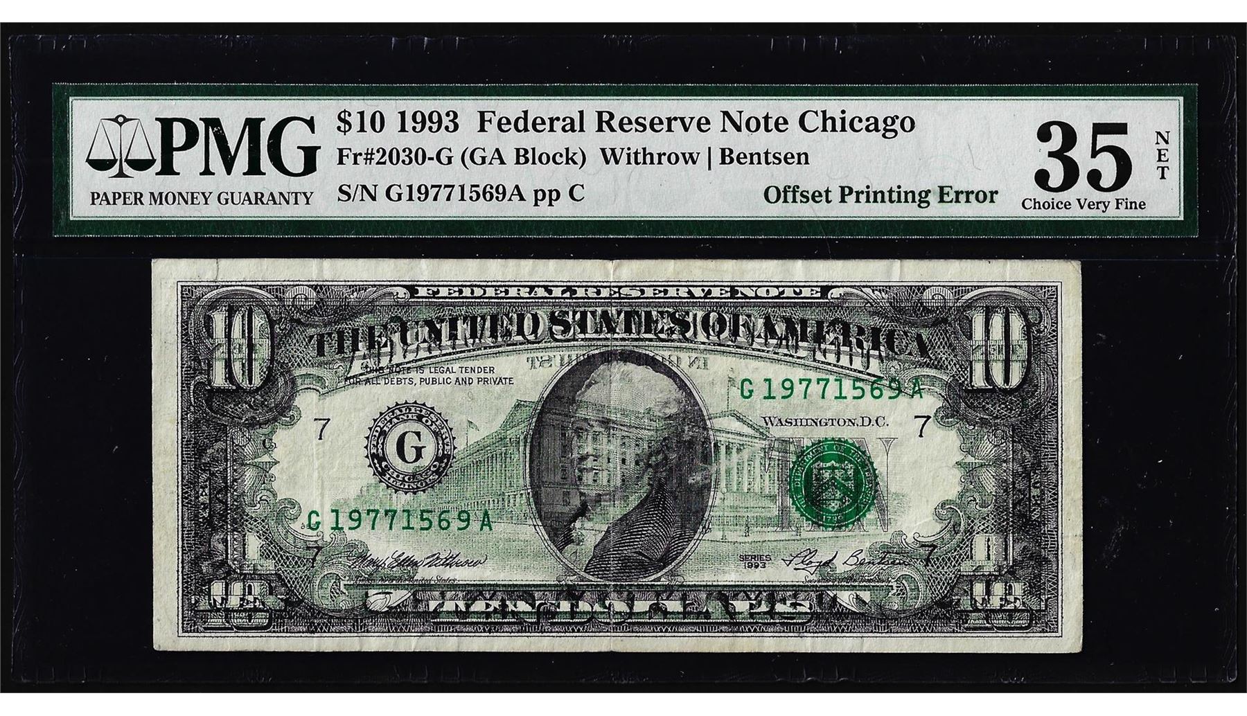 1993 $10 Federal Reserve Note Offset Printing Error PMG Choice Very Fine 35 Net