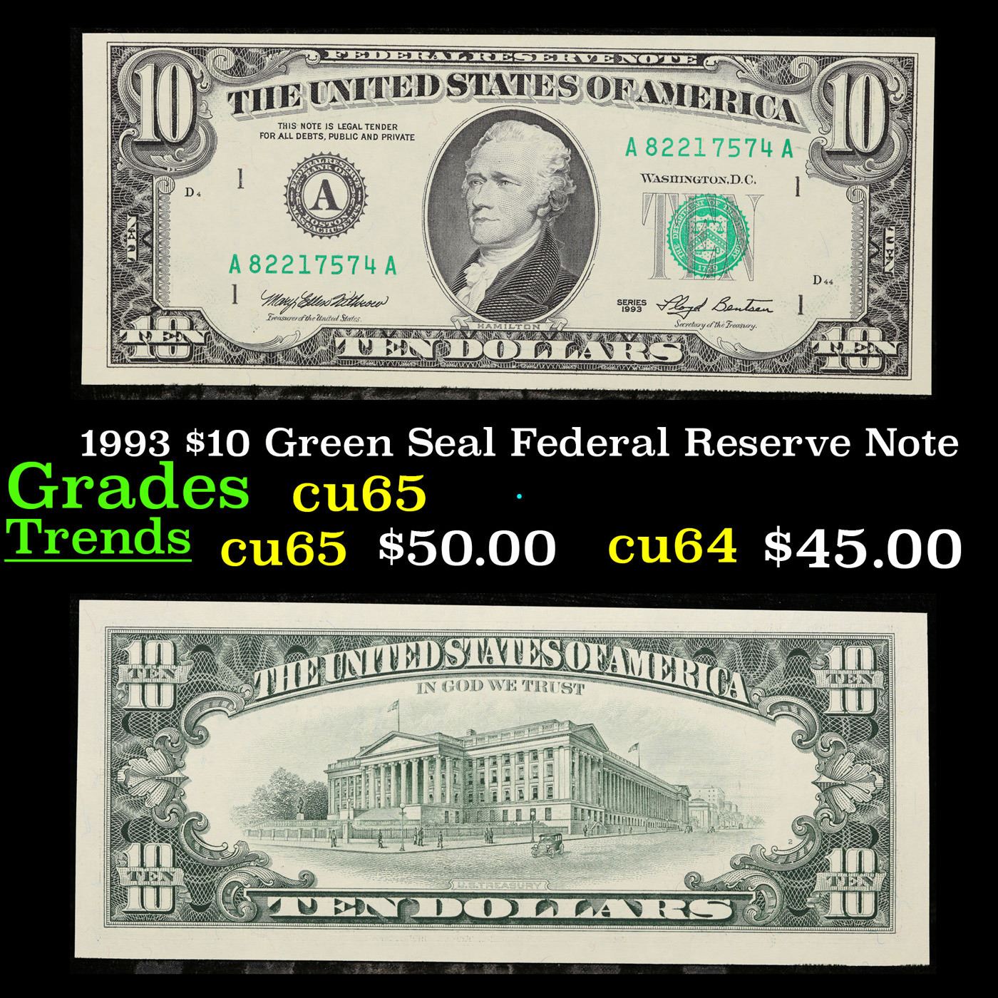 1993 $10 Green Seal Federal Reserve Note Grades Gem CU.