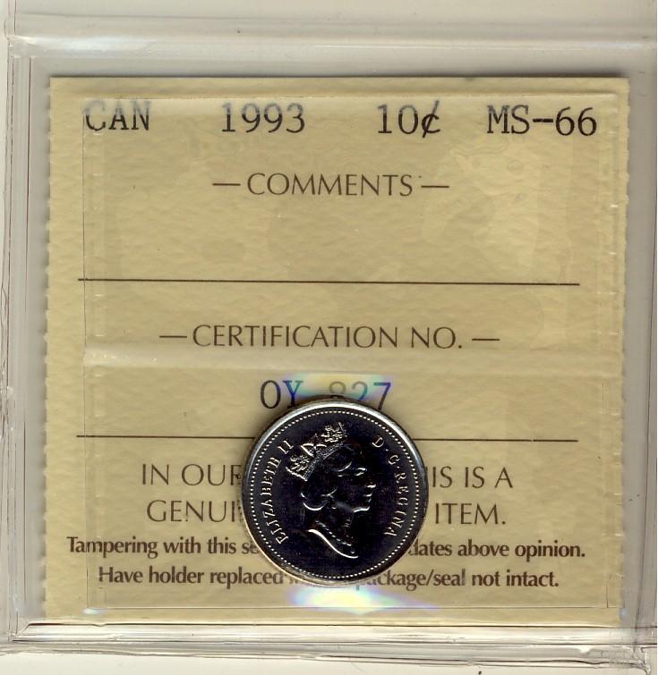 1993 10¢ ICCS MS66. Solo 1 listed in POP report.