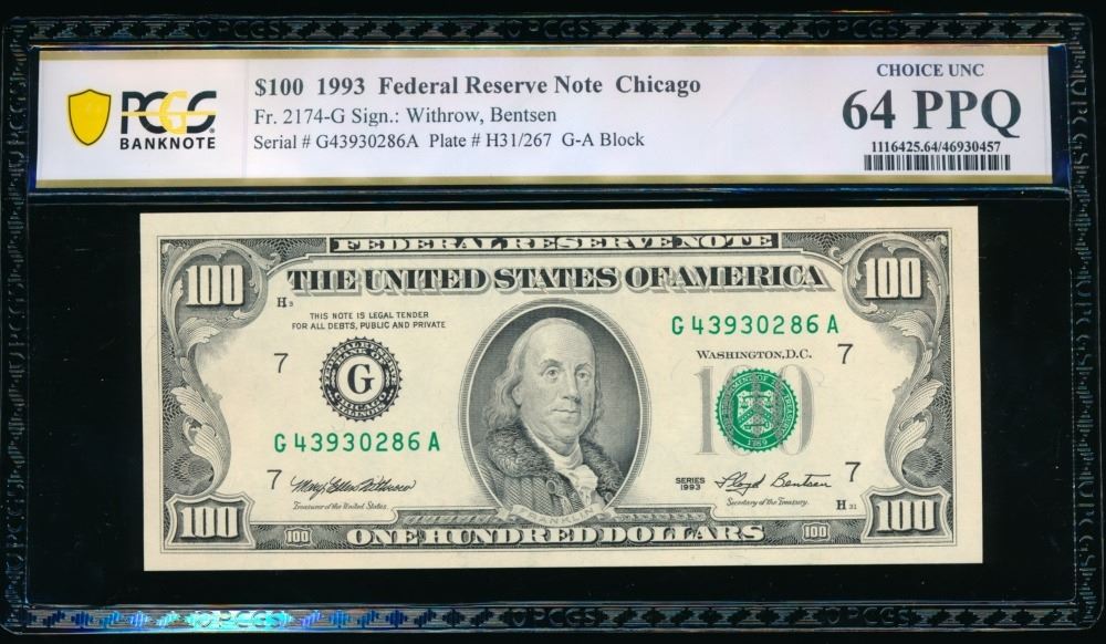 One 1993 $100 Chicago FRN PCGS 64PPQ.