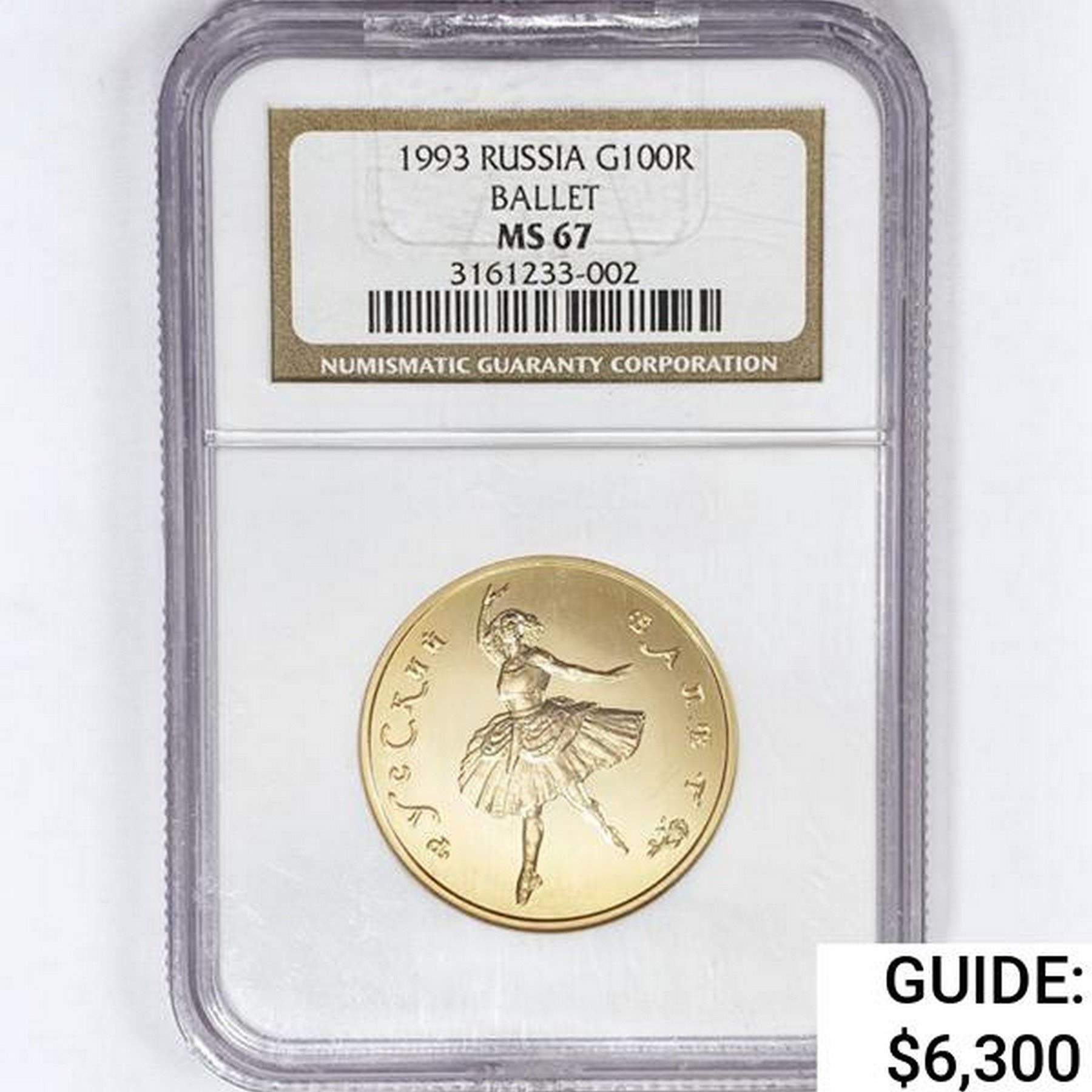 1993 100R 0.11oz Russia Gold Ballet NGC MS67