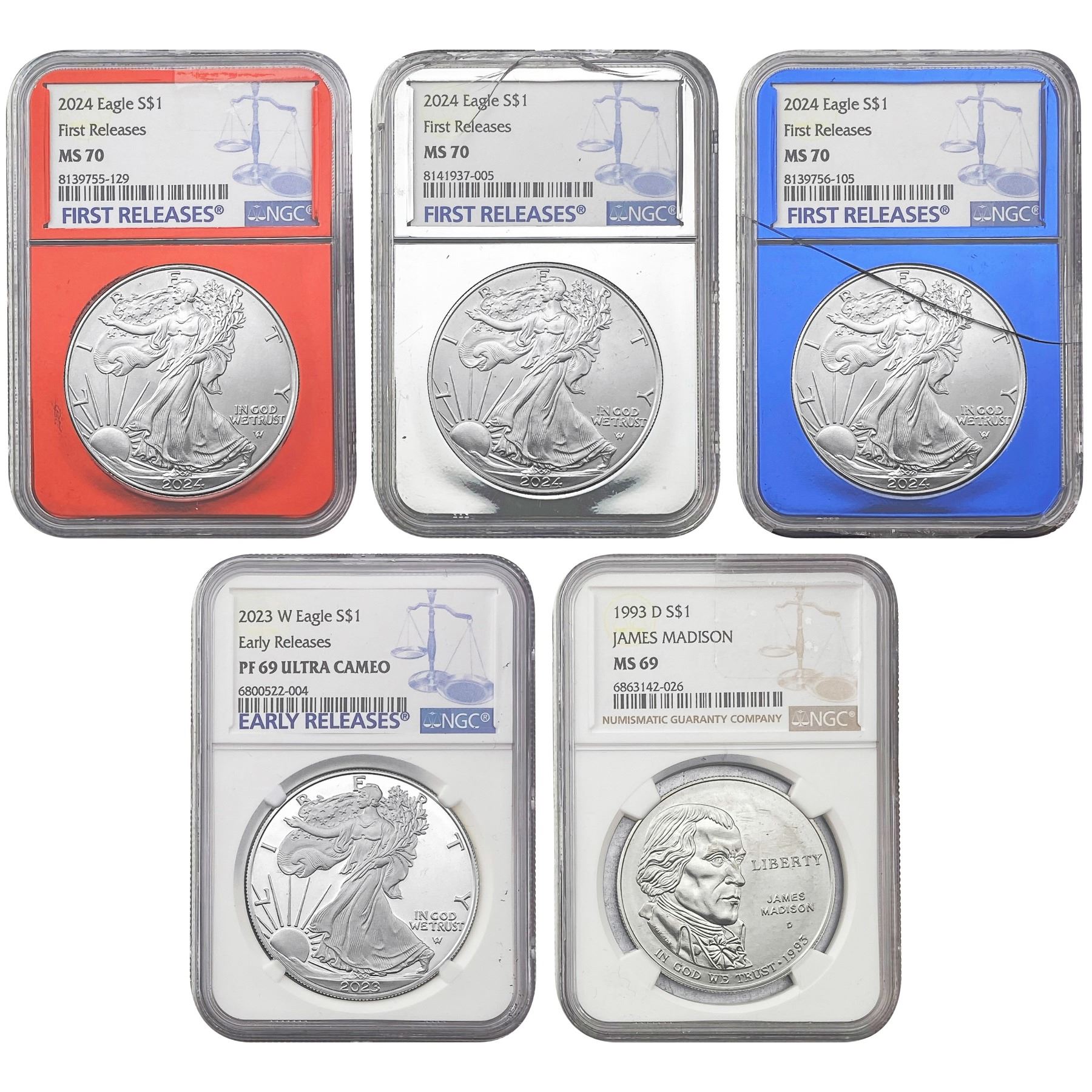 1993-2024 [5] ASE & Commemorative Dollar NGC MS/PF69-70