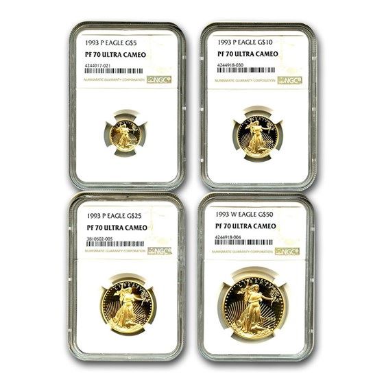 One piece 1993 4-Coin Proof Gold American Eagle Set PF-70 NGC