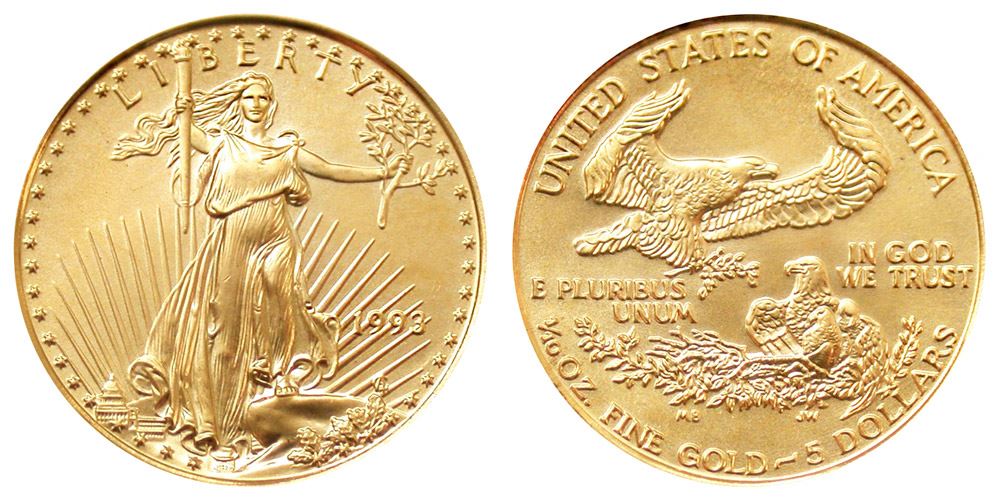 One 1993 $5 American Gold Eagle Coin.