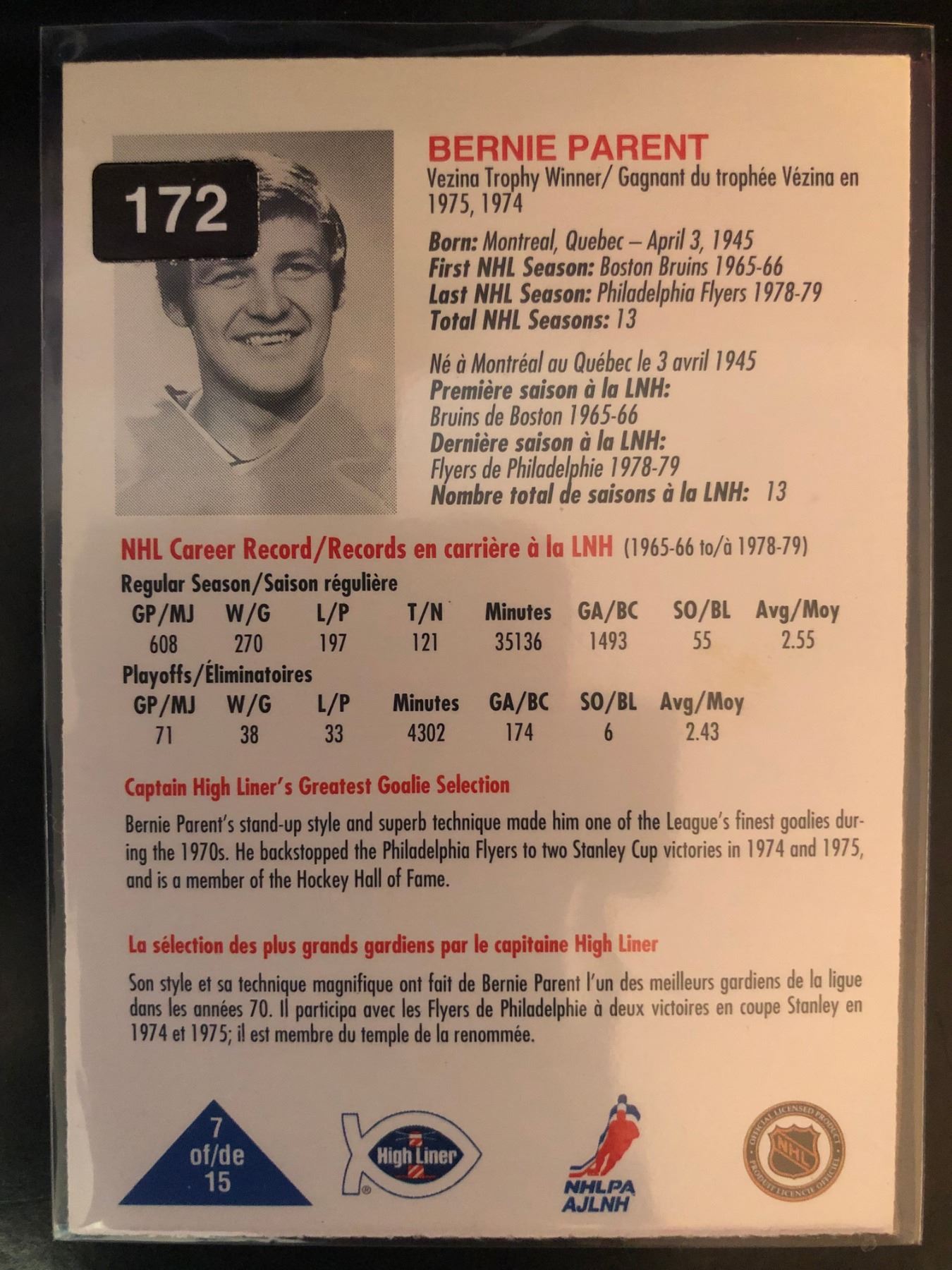 1993-94 High Liner Greatest Goalies Bernie Parent #7