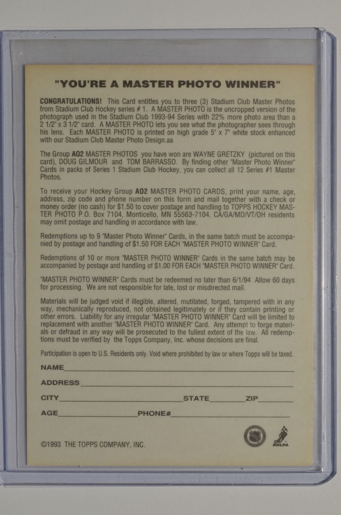 1993-94 Stadium Club Master Photos Winners #8 Wayne Gretzky