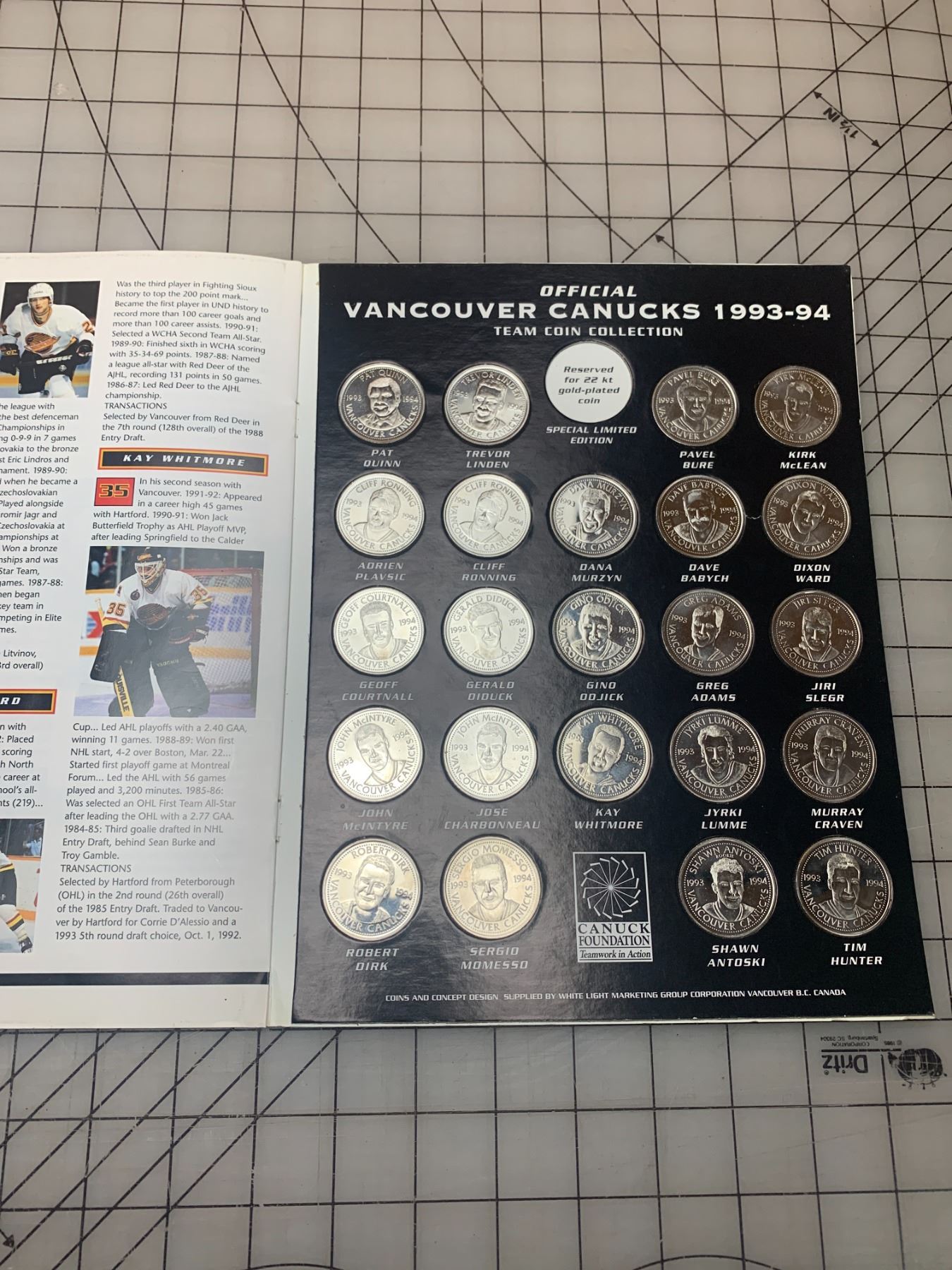 1993-94 VANCOUVER CANUCKS TEAM COIN COLLECTION BOOK