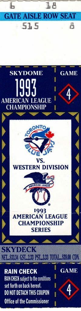1993 ALCS Game 4 Ticket Toronto Blue Jays Skydome