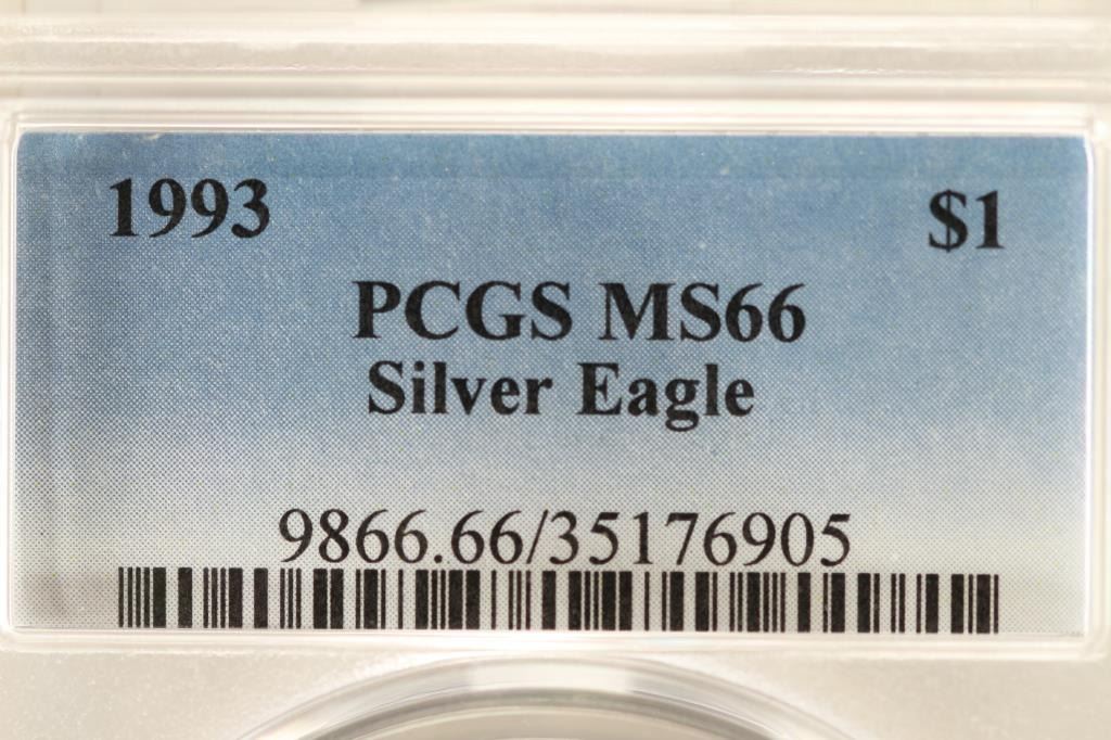 1993 AMERICAN SILVER EAGLE PCGS MS66