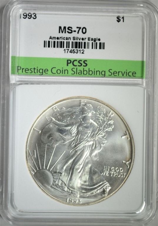 1993 AMERICAN SILVER EAGLE, PCSS PERFECT GEM PROOF ESTIMATE $1100 - $1250.