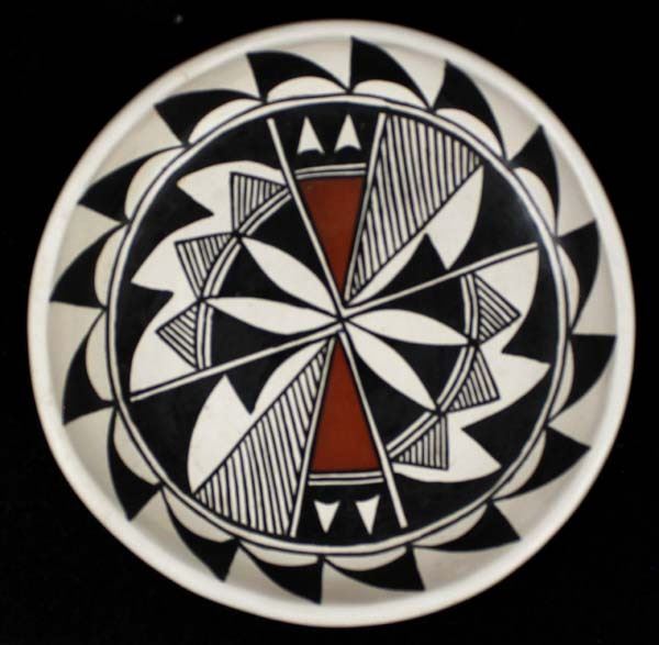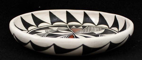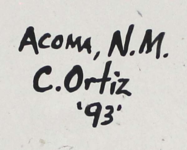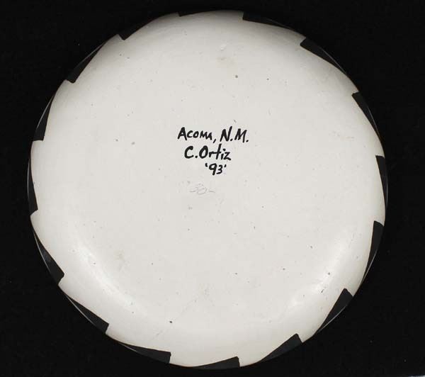1993 Native American Acoma Ceramic Pottery Shallow Bowl by C. Ortiz, measures .75''H x 5''D