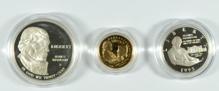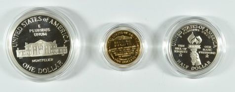 1993 BILL OF RIGHTS 3 PIECE COMMEM. SET: $5 GOLD, SILVER DOLLAR AND HALF DOLLAR