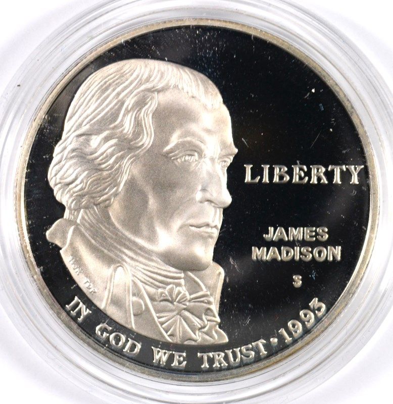 1993 BILL OF RIGHTS PROOF COMMEMORATIVE SILVER DOLLAR,  COIN AND CAPSULE,  NICE