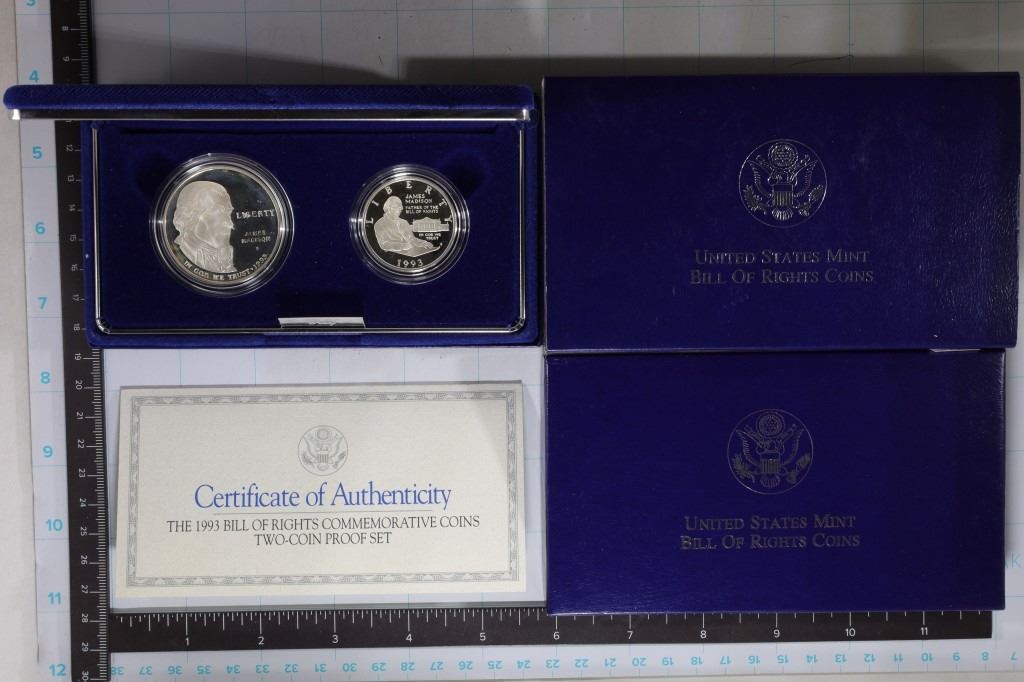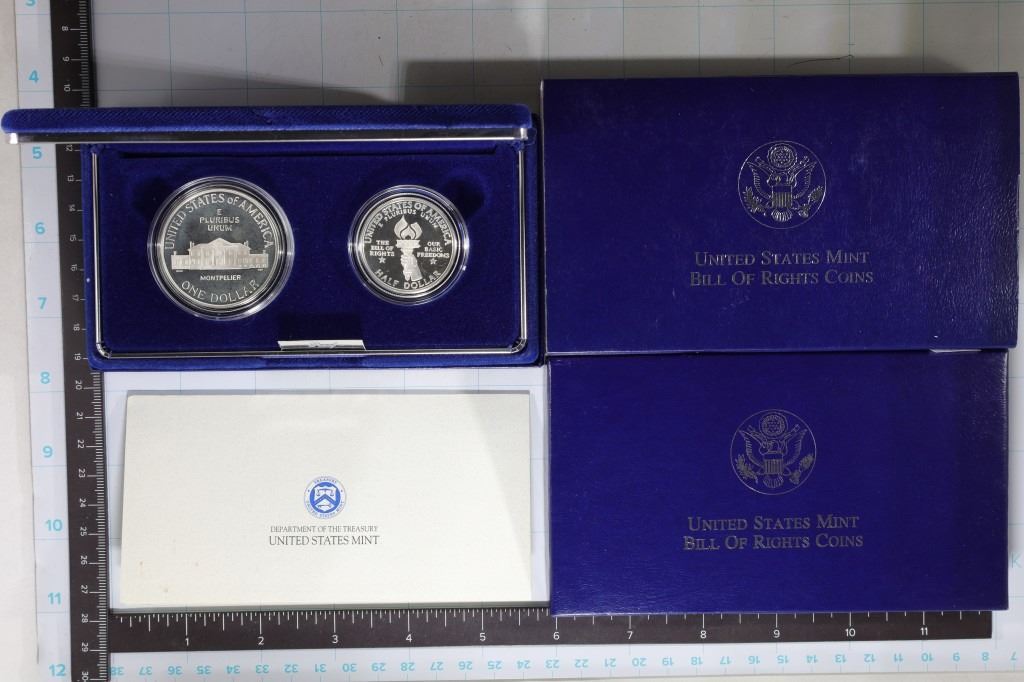 1993-S DOLLAR AND 1993-S US SILVER PROOF HALF DOLLAR. IN ORIGINAL US MINT PACKAGING WITH CERT