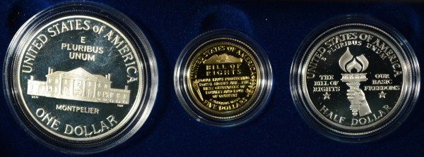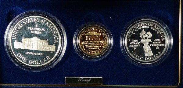 GET THIS BEAUTIFUL SET WHICH INCLUDES: $5.00 GOLD, $1.00 SILVER DOLLAR, AND CLAD HALF DOLLAR, ALL IN NICE ORIGINAL PACKAGING, EST$490.00 TO $520.00