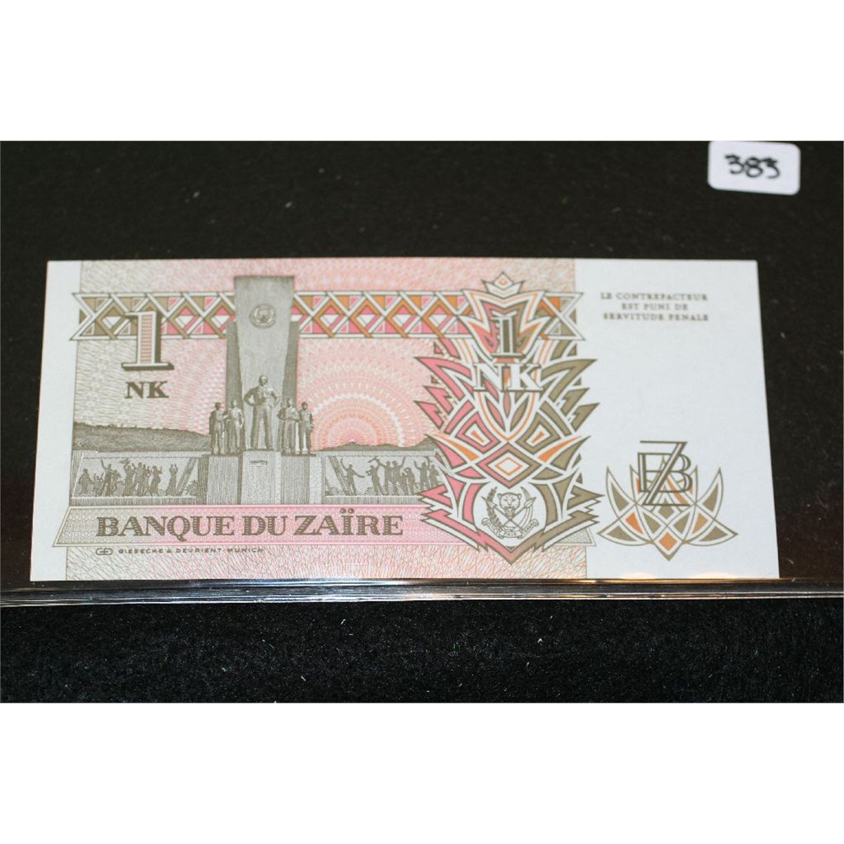 1993 Banque Du Zaire 1 NK Foreign Bank Note