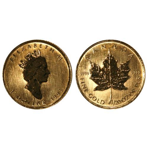 .9999 fine, the ever popular and world renowned Gold Maple Leaf coin. 1/20 oz pure and sealed in clear plastic holder.