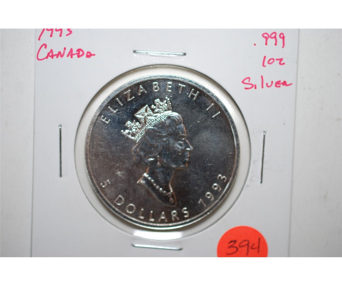 1993 Canada $5 "Maple Leaf" Foreign Coin; 9999 Silver 1 Oz.; EST. $30-40