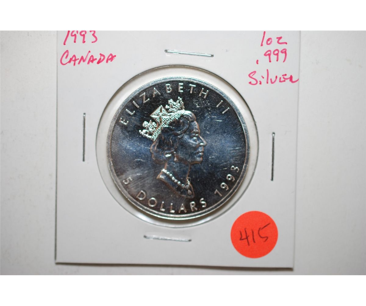 1993 Canada $5 "Maple Leaf" Foreign Coin; 9999 Silver 1 Oz.; EST. $30-40