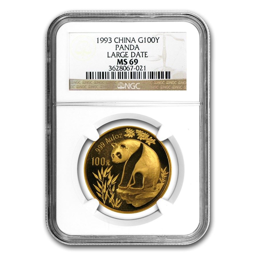 1993 China 1 oz Gold Panda Large Date MS-69 NGC