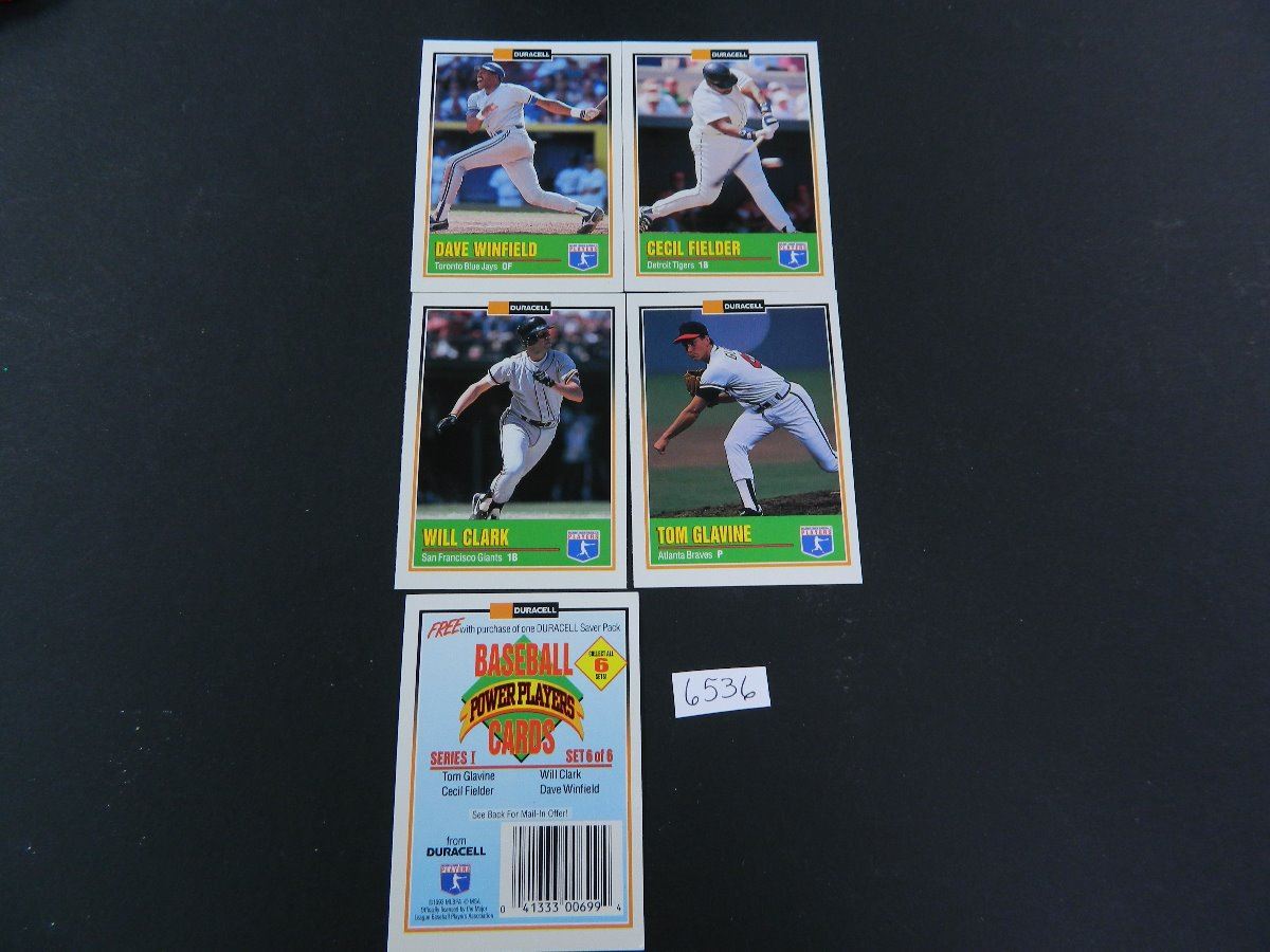 Frank Thomas, Oral Hershiser, Andre Dawson, Tom Glavine, Cecil Fielder, Will Clark, Dave Winfield, Kirby Puckett, Craig Biggio, Mark McGwire, Ozzie Smith, Carlos Baerga, Tony Gwynn, Robin Yount, Barry Bonds, Don Mattingly and Nolan Ryan. you had to buy batteries to get the cards. all one money