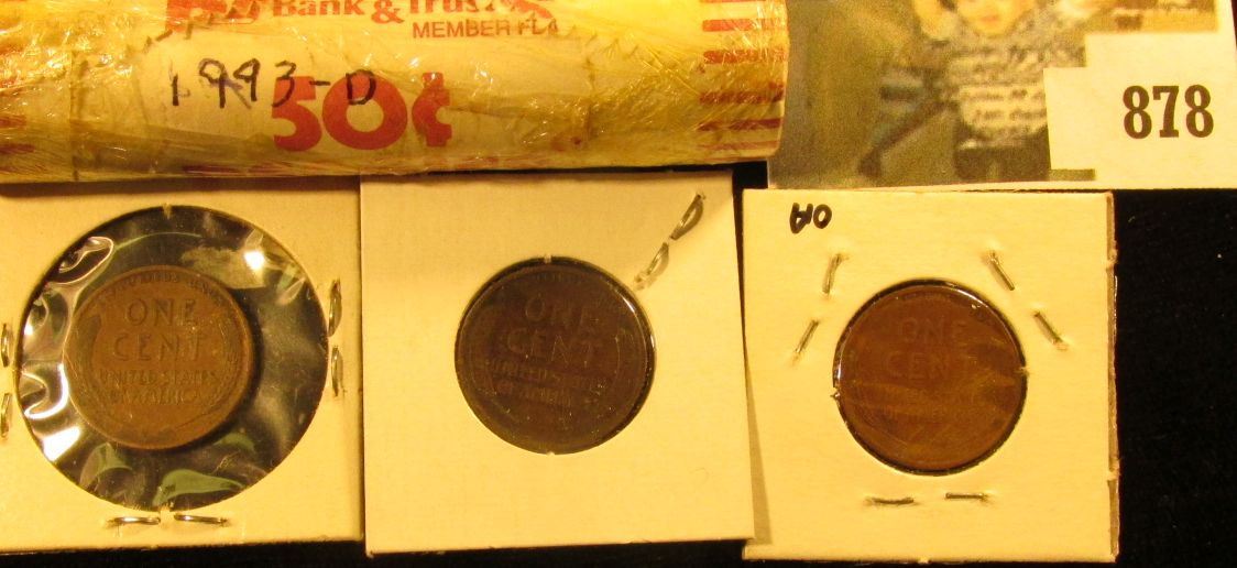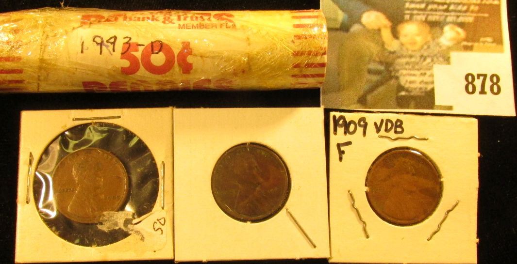 1993 D Solid Date Roll of BU Lincoln Cents; (2) 1909 P & (1) 1909 P VDB Lincoln Cents.