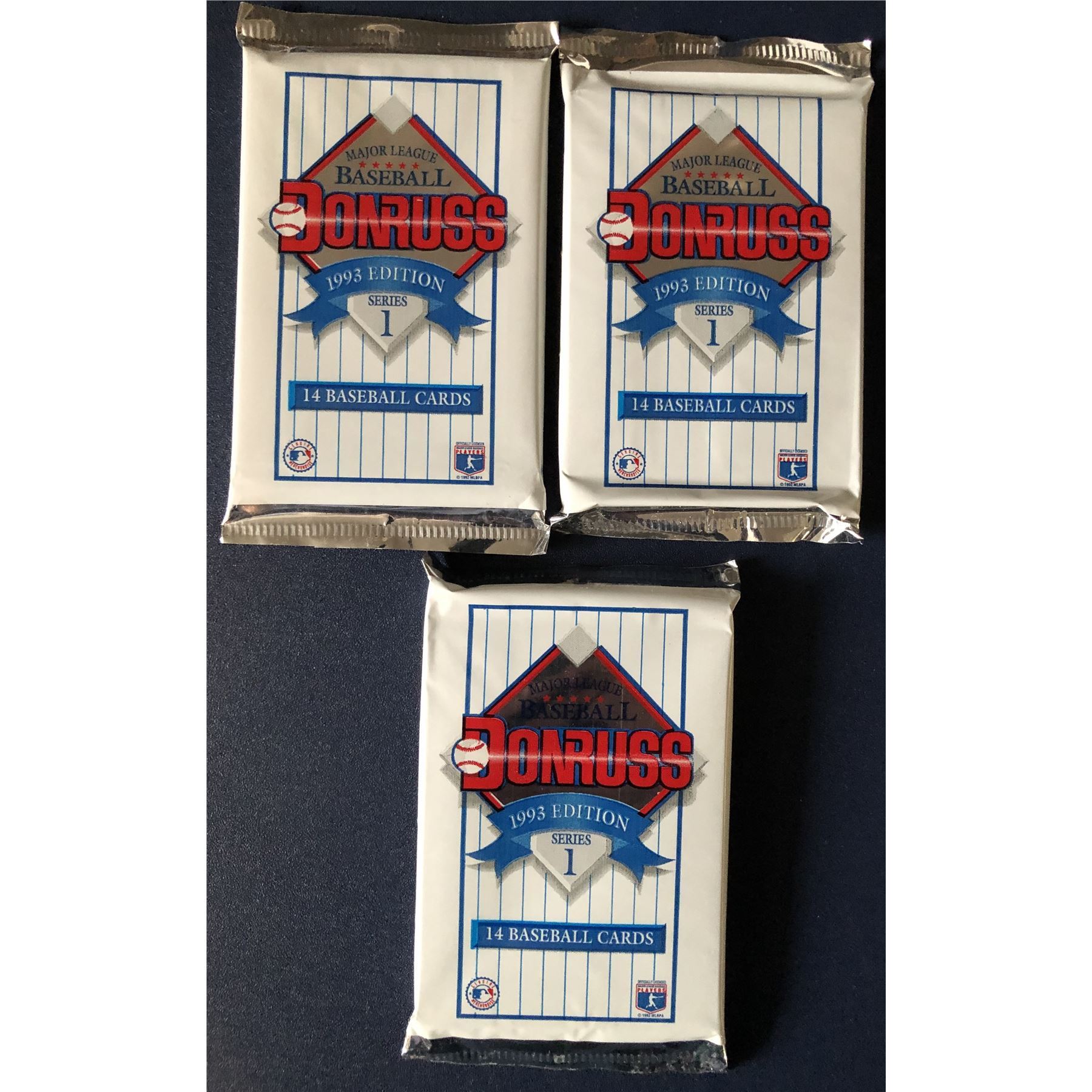 3 sealed packs, each with 14 cards MLB, baseball