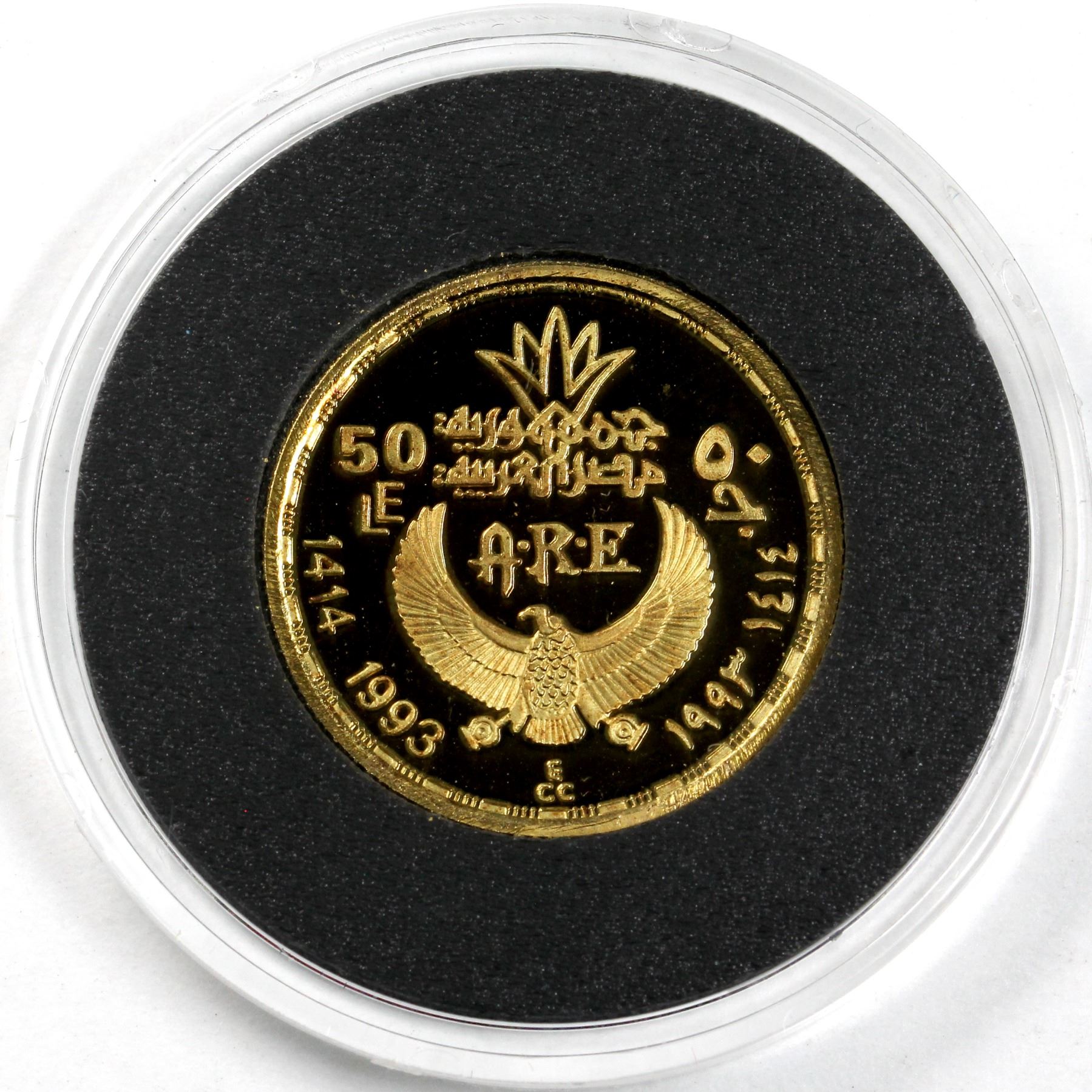 1993 Egypt 50 Pounds .900 Gold Coin UNC. Contains 0.246oz fine gold.